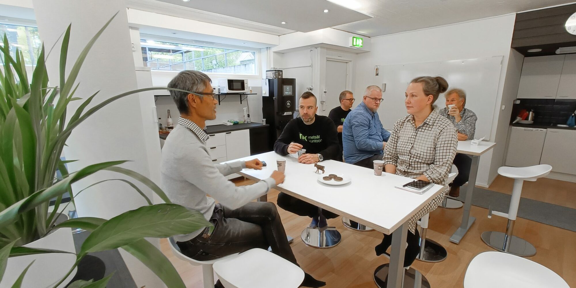 Patteriston työyhteisön ruoka- ja kahvitunnit vietetään yhteisessä taukotilassa, jossa on vapaassa käytössä kahviautomaatti ja säilytystilaa eväille.